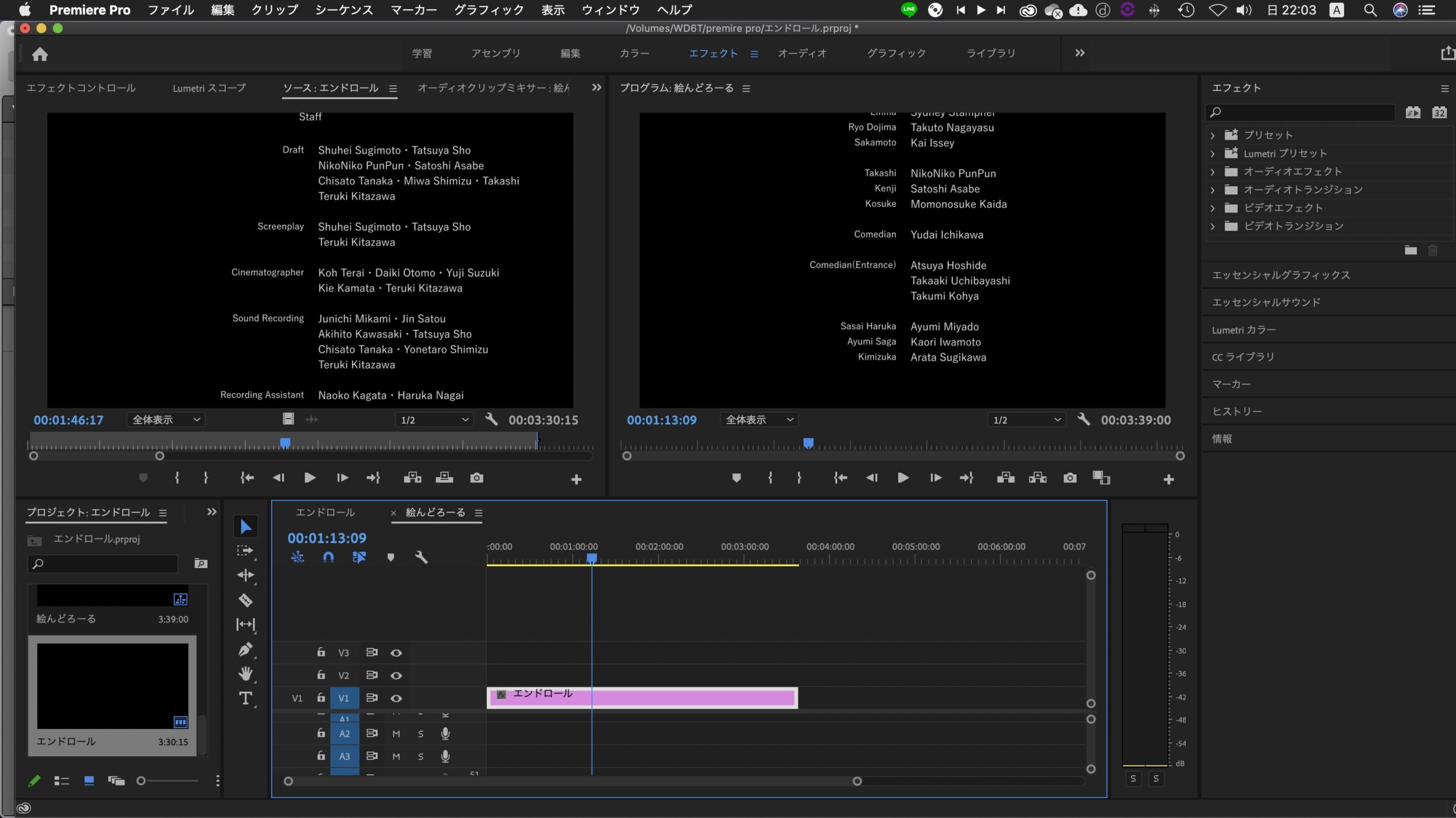 のでエンドロールはプレミアプロ 使用。
